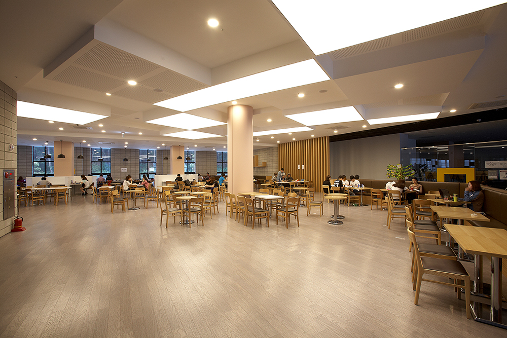 L카페는 대학 내 카페 중 가장 큰 규모를 자랑하고 있으며 도서관 입구에 자리한 개방감 있는 열린 공간입니다.