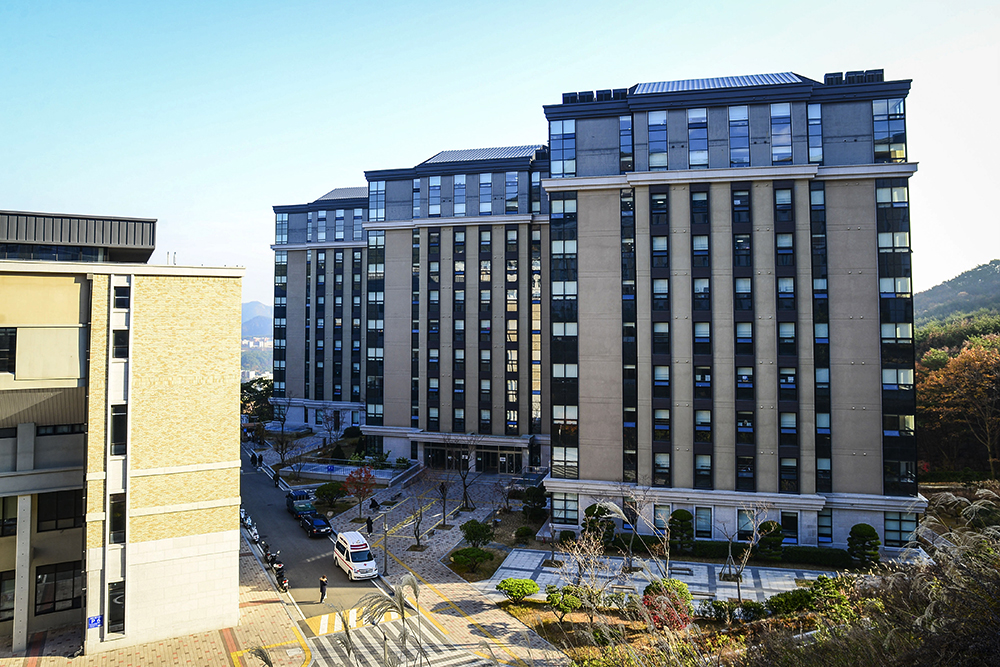 학생기숙사(교내)는 현대식 건물 3개 동으로 이루어져 있으며 건물 내에서는 카드인식 없이는 이용할 수 없도록 철저한 보안 관리 시스템을 운영하고 있습니다.